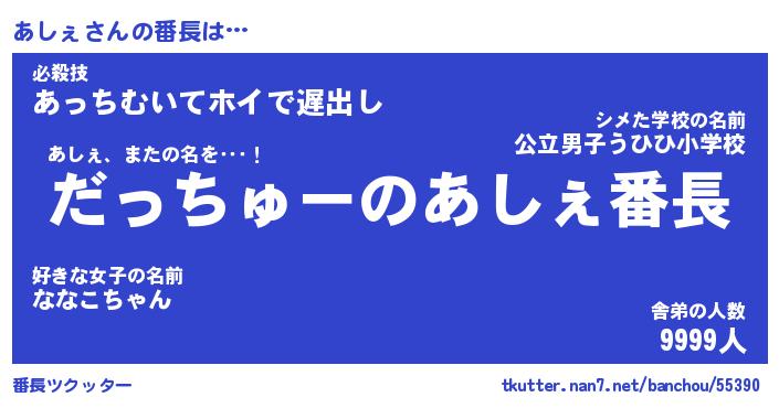 | 伝説のあだ名 | 『伝説のスナイパーあしぇ』 |