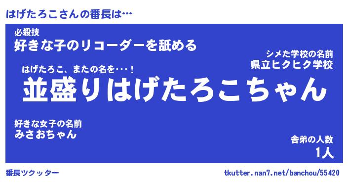 | 2回繰り返すあだ名 | 『はげはげ』『ははげげ』『ぬめぬめ』 |