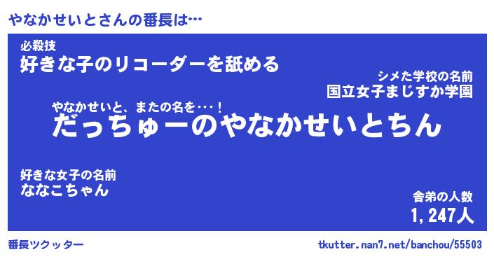 肩書あだ名 | 『やなかせいと店長』『やなかせいと班長』 |
