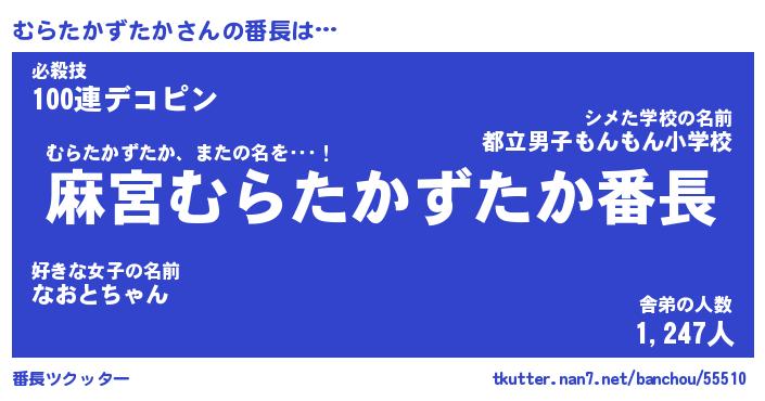 | ヒーロー風カッコイイあだ名 | 『スーパームラタカズタカ』 |