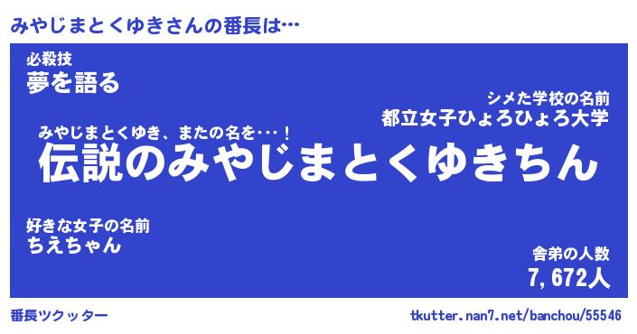 | 男性向けラノベタイトル風あだ名 | 『みやじまとくゆきの憂鬱』 |