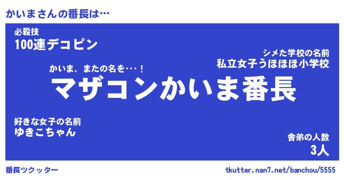 | 肩書あだ名 | 『かいま社長』『かいま総理大臣』 |