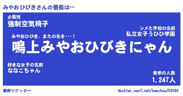 | ヒーロー風カッコイイあだ名 | 『スーパーミヤオヒビキ』『銀牙騎士ミヤ』 |
