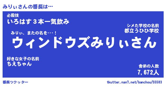 | 意味不明あだ名 | 『ペロリンみりぃ』『みりぃフォーエバー』 |