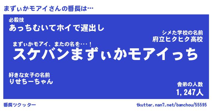 | 欧米人風あだ名 | 『マイケルまずぃかモアイ』 |