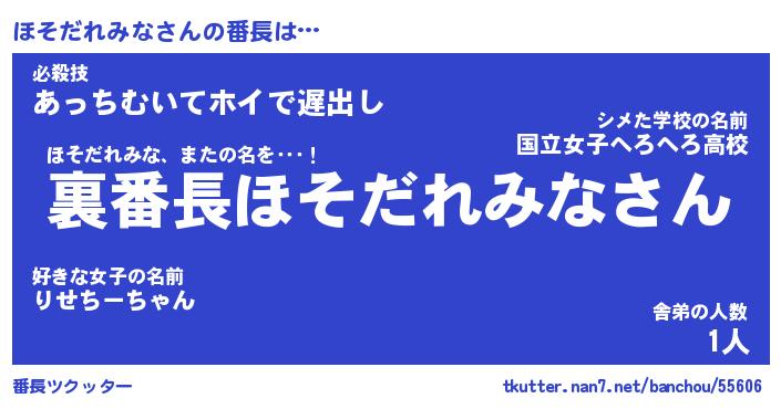 | 伝説のあだ名 | 『不死鳥のスナイパーほそだれみな』 |