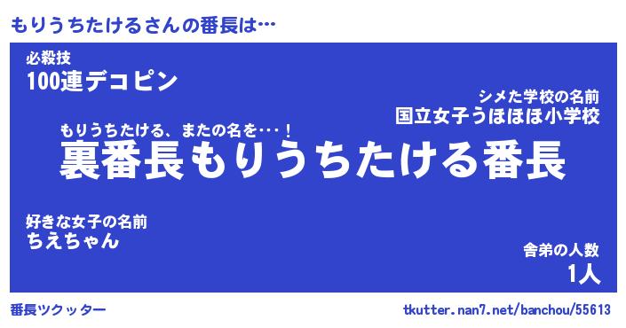 | 肩書あだ名 | 『もりうちたける御曹司』 |