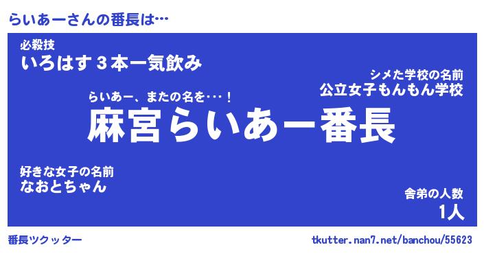 | 肩書あだ名 | 『らいあー御曹司』『らいあー総理大臣』 |