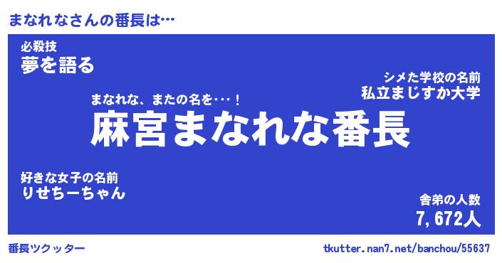 | 2回繰り返すあだ名 | 『まなまな』『ままなな』『ぬらぬら』 |