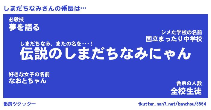 | 伝説のあだ名 | 『伝説のスナイパーしまだちなみ』 |
