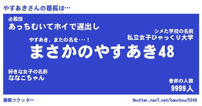 | ヒーロー風カッコイイあだ名 | 『スーパーヤスアキ』『天弓騎士ヤス』 |