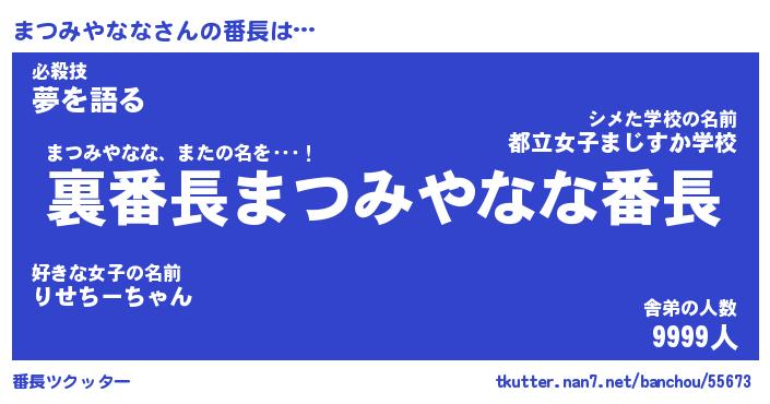 | ヒーロー風カッコイイあだ名 | 『スーパーマツミヤナナ』『天弓騎士マツ』 |