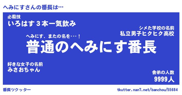 | 意味不明あだ名 | 『ペロリンへみにす』『永久保存へみにす』 |