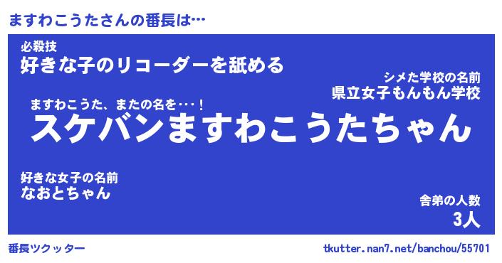 | ヒーロー風カッコイイあだ名 | 『スーパーマスワコウタ』『魔戒騎士マス』 |