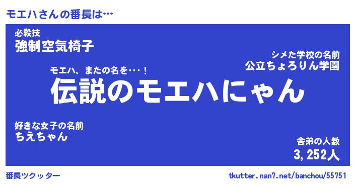 | ヒーロー風カッコイイあだ名 | 『スーパーモエハ』『ウルトラモエハマン』 |