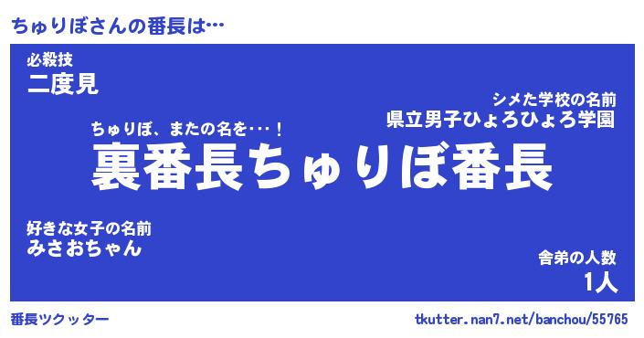 | 肩書あだ名 | 『ちゅりぼ社長』『ちゅりぼ総理大臣』 |