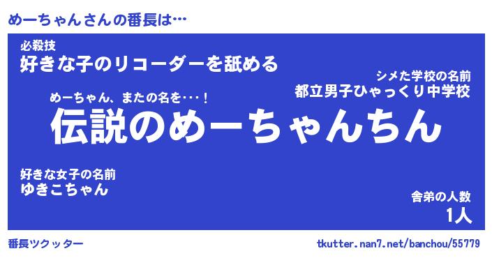 | 肩書あだ名 | 『めーちゃん御曹司』『めーちゃん班長』 |