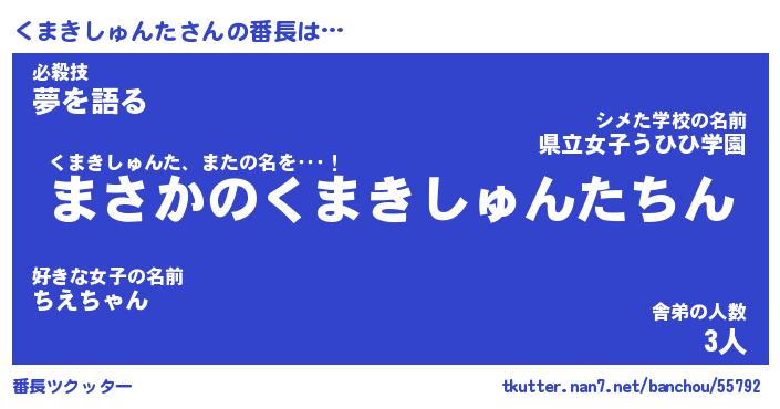 | 伝説のあだ名 | 『伝説のスナイパーくまきしゅんた』 |