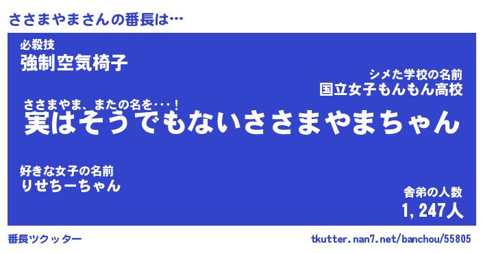 | 肩書あだ名 | 『ささまやま社長令嬢』『ささまやま塾長』 |