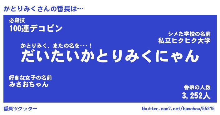| ファンタジー風あだ名 | 『カトフェル』『エターナルカトリミクー』 |