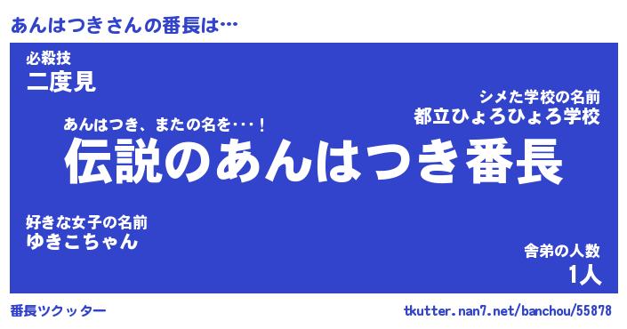 | ヒーロー風カッコイイあだ名 | 『スーパーアンハツキ』『黄金騎士アン』 |