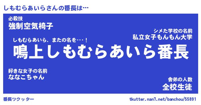 | 伝説のあだ名 | 『封印されしスナイパーしもむらあいら』 |