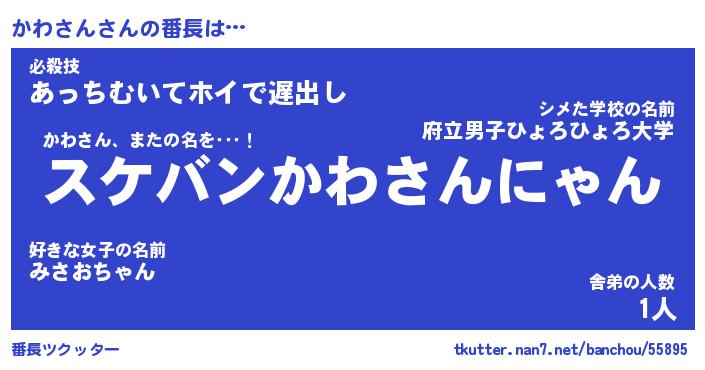 | 肩書あだ名 | 『かわさん御曹司』『かわさん総理大臣』 |