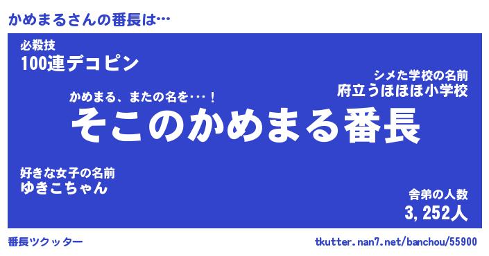 | 意味不明あだ名 | 『ペロリンかめまる』『永久保存かめまる』 |