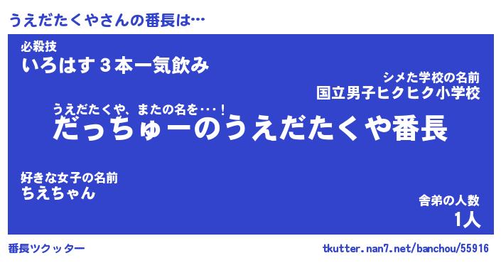 | 肩書あだ名 | 『うえだたくや店長』『うえだたくや団長』 |