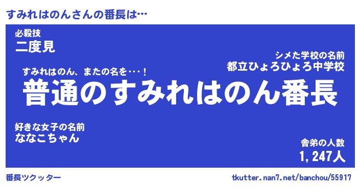 | 2回繰り返すあだ名 | 『すみすみ』『すすみみ』『にたにた』 |
