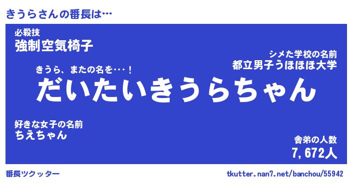 | ピコ太郎風あだ名 | 『キコ三郎』『ピキ四郎』『キウ六郎』 |