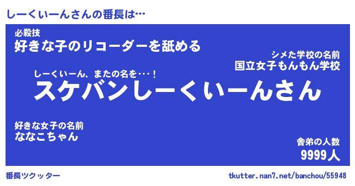 | 伝説のあだ名 | 『不死鳥のスナイパーしーくいーん』 |
