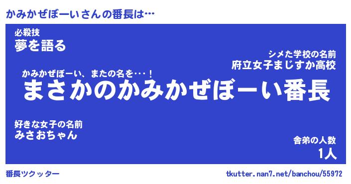 | 女子向けラノベタイトル風あだ名 | 『(仮)かみかぜぼーいのやんごとなき事情』 |