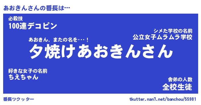 | ファンタジー風あだ名 | 『アオフェル』『エターナルアオキンー』 |