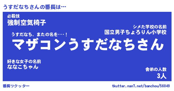 | ヒーロー風カッコイイあだ名 | 『スーパーウスダナチ』『魔戒騎士ウス』 |