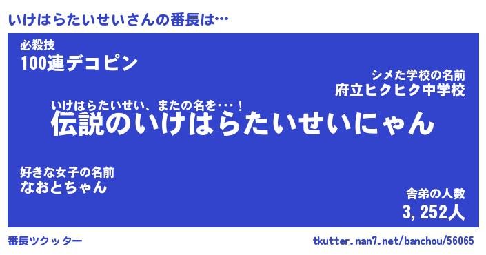 | ピコ太郎風あだ名 | 『イコ太郎』『ピイ太郎』『イケ一郎』 |