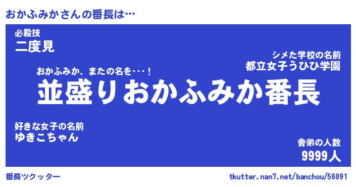 | ヒーロー風カッコイイあだ名 | 『スーパーオカフミカ』『天弓騎士オカ』 |
