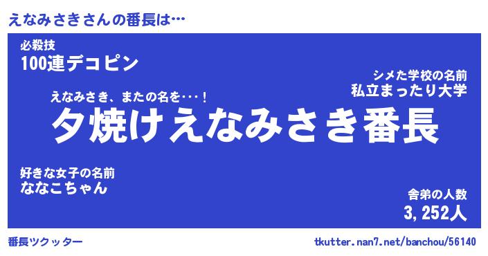 | ヘコむあだ名 | 『えなにゅー』『つくし』『えなっ子』 |