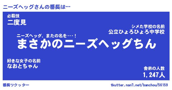 | ヒーロー風カッコイイあだ名 | 『スーパーニーズヘッグ』『銀牙騎士ニー』 |