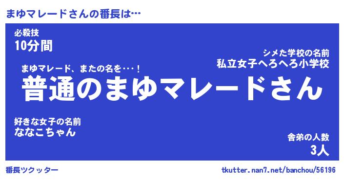 | 男性向けラノベタイトル風あだ名 | 『まゆマレードの憂鬱』 |