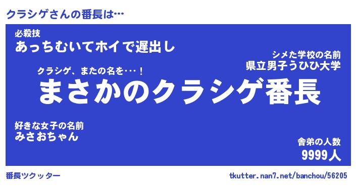 | ヒーロー風カッコイイあだ名 | 『スーパークラシゲ』『天弓騎士クラ』 |