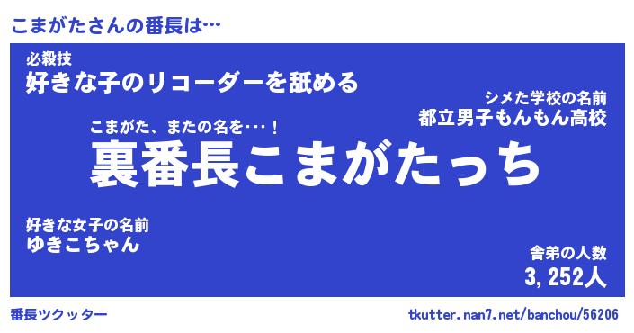 | ファンタジー風あだ名 | 『コマフェル』『エターナルコマガター』 |