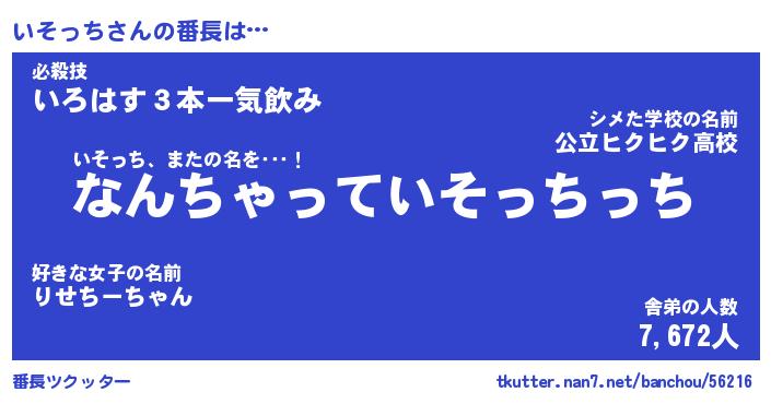 | 意味不明あだ名 | 『ペロリンいそっち』『永久保存いそっち』 |