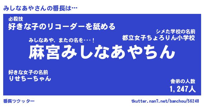 | ポケモン風あだ名 | 『ミシチュウ』『ミシナダネ』 |