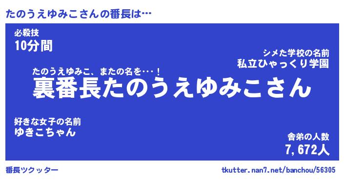 | 男性向けラノベタイトル風あだ名 | 『タノウエユミコアートオンライン』 |