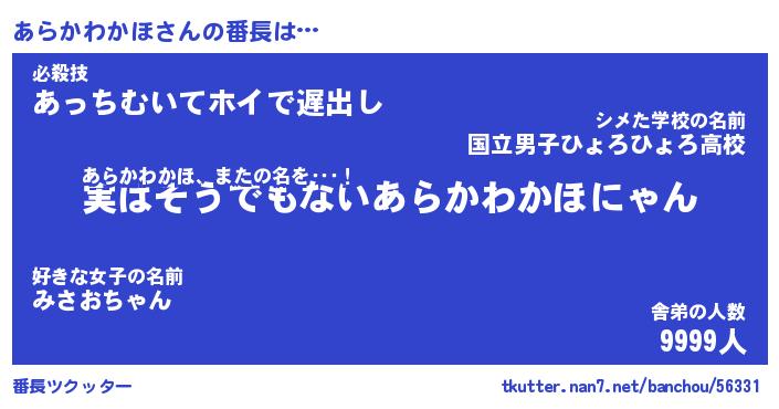 | 肩書あだ名 | 『あらかわかほ御曹司』 |