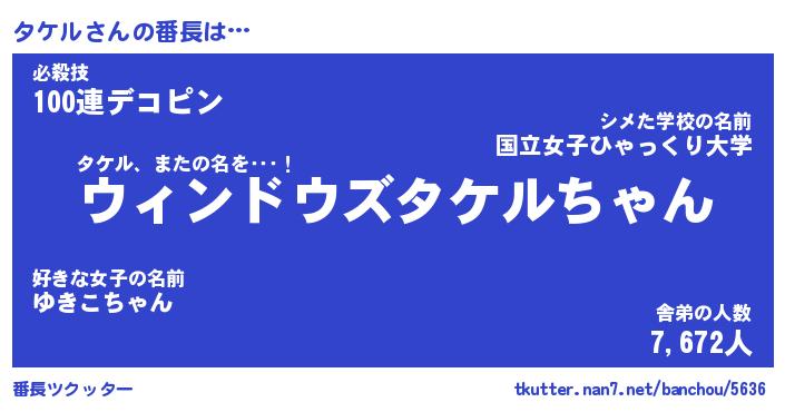 | ファンタジー風あだ名 | 『タケフェル』『エターナルタケルー』 |