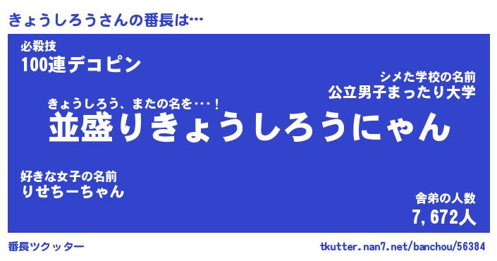 | ヒーロー風カッコイイあだ名 | 『スーパーキョウシロウ』『炎刃騎士キョ』 |