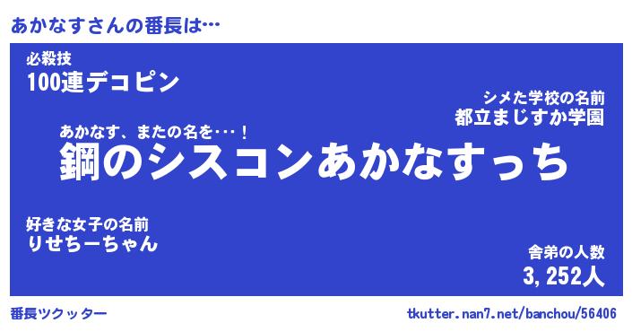 | 意味不明あだ名 | 『ペロリンあかなす』『永久保存あかなす』 |