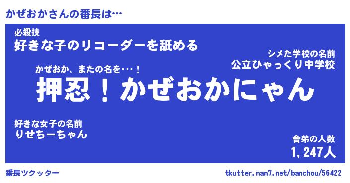 | 肩書あだ名 | 『かぜおか店長』『かぜおか大統領』 |